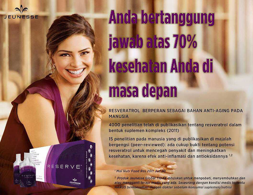 RESERVE™ merupakan terobosan penting dalam dunia kesehatan, terutama dengan kandungan zat essensial bernama Resveratrol. Para peneliti di sejumlah univesitas ternama seperti Universitas Harvard (USA), Imperial College of Science (Inggris), dan Prof. David Sinclair dari the University of New South Wales (UNSW) membuktikan resveratrol mampu memberi asupan antioksidan yang kuat untuk melindungi sel,